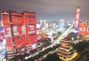 当邕江晚风拂过壮锦纹样的灯笼,三街两巷的石板路上响起孩子们追逐嬉闹的脚步声。3月31日晚,带着女儿选购绣球挂饰的李女士忽然驻足,用手机记录下邕州阁飞檐与动态光效交织的画面:朱红梁柱在LED屏上流淌出”潮玩广西”的霓虹轨迹,玻璃幕墙倒映的立交桥车流如同银河倾泻。这幕现实版《千与千寻》的场景,正在南宁18个地标建筑同步上演。