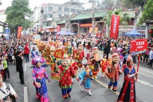 上午九点,激动人心的时刻终于来临。随着一声响亮的号角,26支巡游队伍浩浩荡荡地从蒲庙镇政府出发。走在最前面的,是威风凛凛的蒲庙大鼓方阵。巨大的鼓身被壮汉们稳稳抬起,他们手中的鼓槌有力地挥舞着,激昂的鼓声响彻云霄,瞬间点燃了现场的气氛。紧接着,蒲庙八音壮鼓方阵登场。那独特的八音演奏,融合了鼓、锣、镲等多种乐器,节奏明快,旋律优美,仿佛在诉说着这片土地的古老故事。山歌唱福队也不甘示弱,身着绚丽民族服饰的歌手们,用嘹亮的歌声,唱出对美好生活的向往和祝福。巡游队伍沿着五圣宫、石狮子等标志性景点一路前行,所到之处,人头攒动,欢呼声、掌声此起彼伏。道路两旁,挤满了围观的群众,大家纷纷拿出手机拍照录像,想要留住这精彩的瞬间。