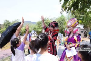 活动现场宛如一座精心搭建的沉浸式文化迷宫。“非遗”展览秀区域,竹编艺人指尖翻飞,篾条在电力驱动的微型机械辅助下,以肉眼可见的速度编织出精巧的纹样;绣球上的金线在射灯下流转着神秘光泽,这些凝聚着匠人心血的作品,无声诉说着传统工艺与现代技术的完美交融。“非”常有趣互动区更是热闹非凡,趣味山歌问答环节中,壮族姑娘清亮的歌声与观众此起彼伏的抢答声交织,当游客答对问题获得非遗文创小礼品时,现场气氛瞬间被点燃。